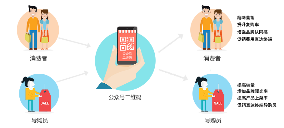 消費(fèi)者:消費(fèi)者掃碼關(guān)注品牌商公眾號(hào)領(lǐng)取紅包,促銷(xiāo)費(fèi)用直達(dá)消費(fèi)者,刺激購(gòu)買(mǎi),提升復(fù)購(gòu)率;